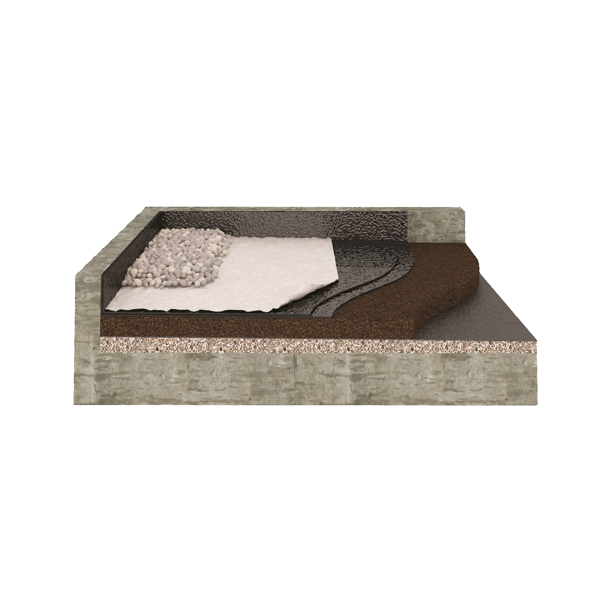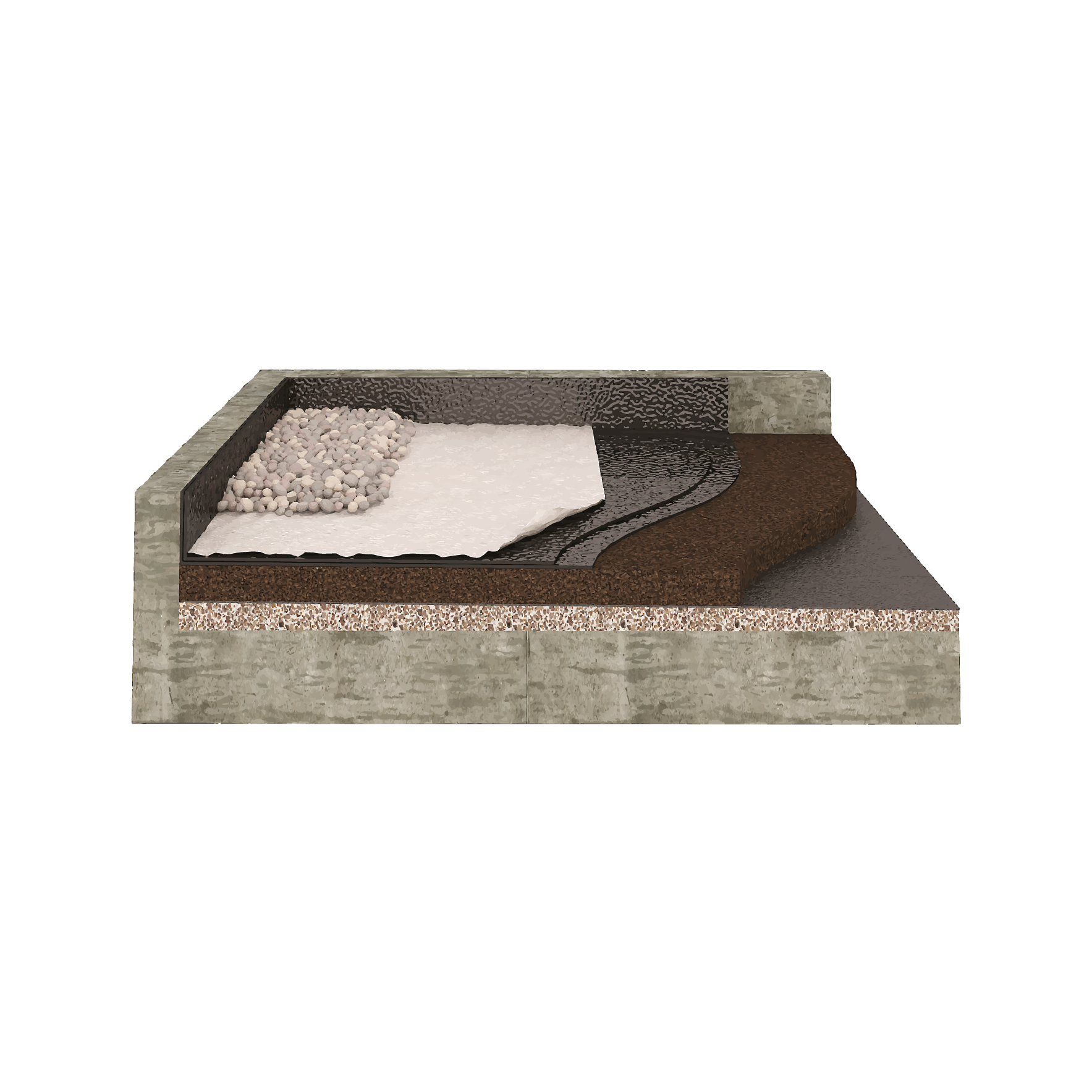 On a traditional roof, the insulation serves to support the waterproofing and there is a need to place a barrier to the steam under the insulation material owing to the permeability of this solution to steam. The protection layer depends on accessibility to the rood. Expanded cork board are practically inert and wholly compatible with most of the materials deployed in civil construction, thereby accepting the application of the waterproofing system, avoiding the carrying out of screeds, namely on roofs with limited accessibility when restoring buildings.