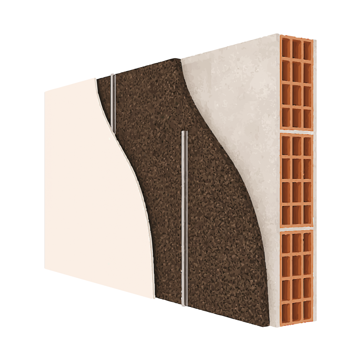 The application of expanded cork board in the insulation of double walls (air gap) provides excellent thermal insulation for a long time period plus suitable acoustic comfort.